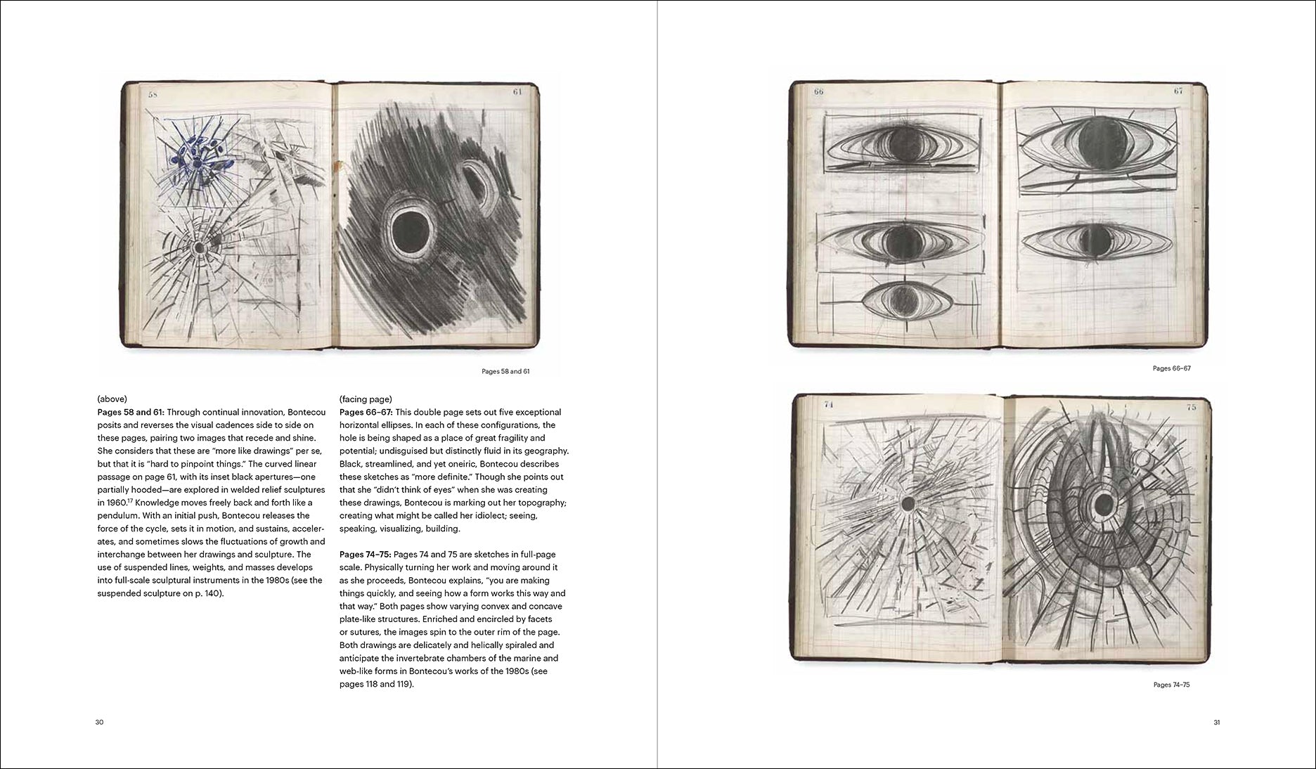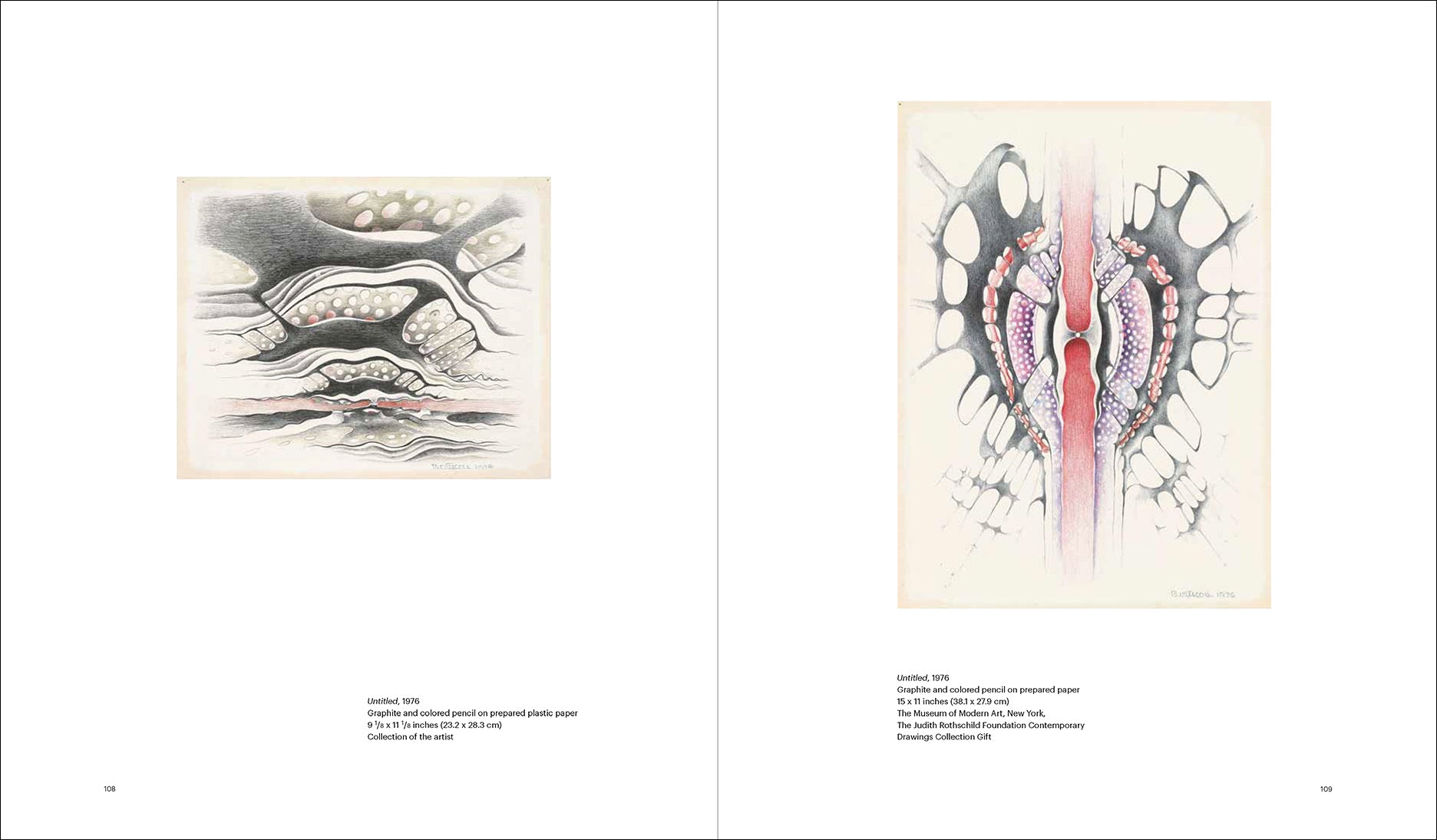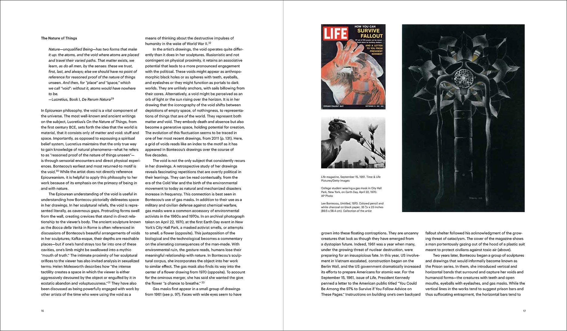 The first survey of more than 50 years of drawn work by American artist Lee Bontecou (b. 1931), this book examines the artist’s consistently innovative techniques, impressively varied imagery, and thematic concerns and their historical context. Though her sculpture has garnered the most attention, drawing has long been an important component of Bontecou’s artistic practice. Known for forms at once organic and mechanistic, her works on paper are populated by imagery that ranges from black voids to mechanomorphs and hybrid descendants of teeth, plants, and fish. Lee Bontecou: Drawn Worlds traces the arc of her oeuvre from early soot works created using powder from a welding torch to recent drawings in pencil and colored pencil that evoke cosmoses and microcosmic worlds. Includes a drawing chronology and selected exhibition history and bibliography.
